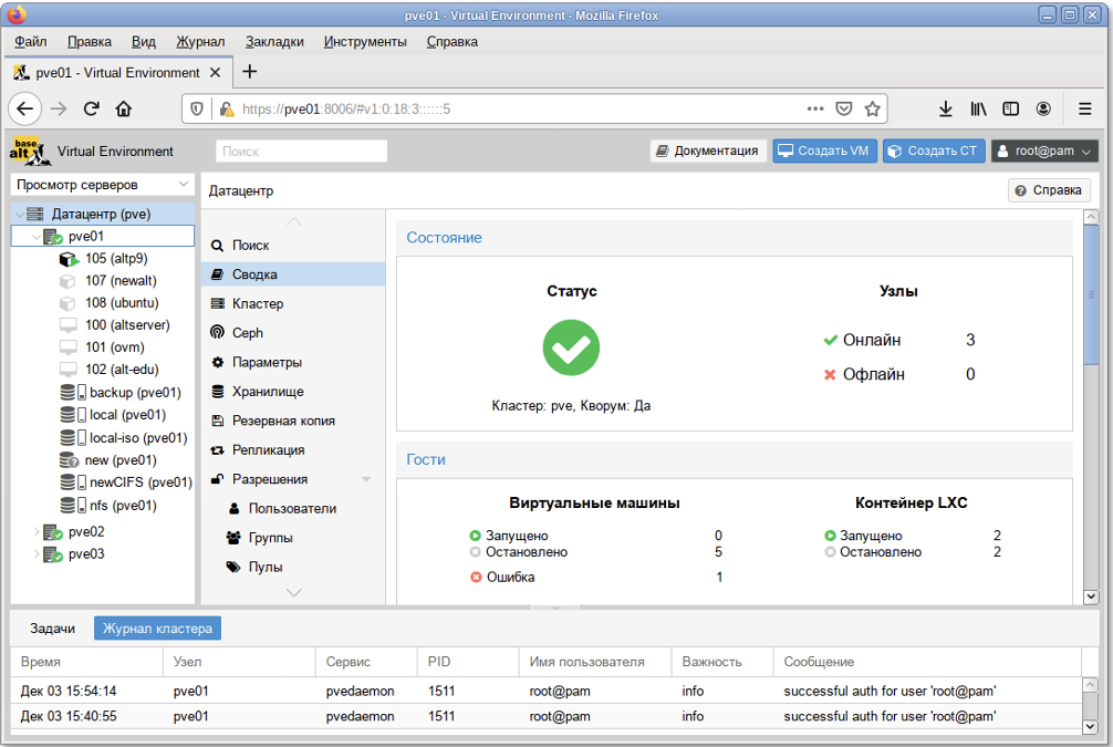 Альт Виртуализация в режиме PVE от СПО “Базальт”