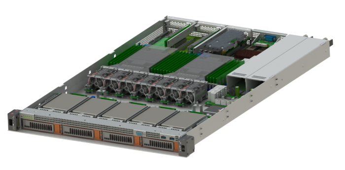 - 4 шт. SAS 12G / SATA дисков 3’5 (LFF) форм-фактора с установкой дисков в переднюю кассету, либо 4 шт. PCIe gen NVMe x4 (через корзинки-переходники);